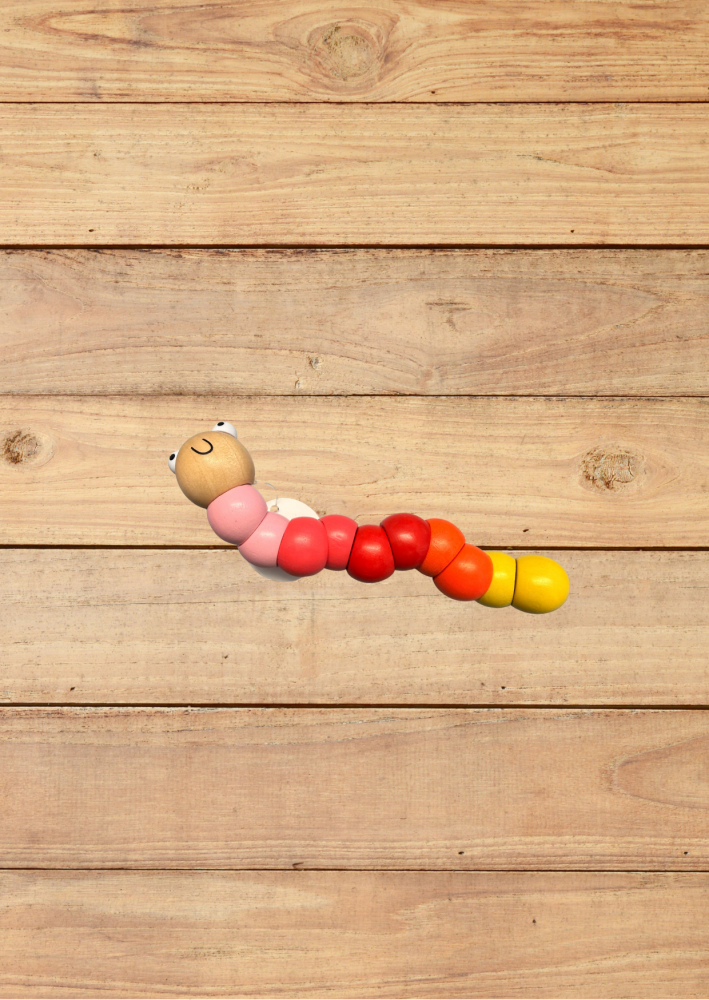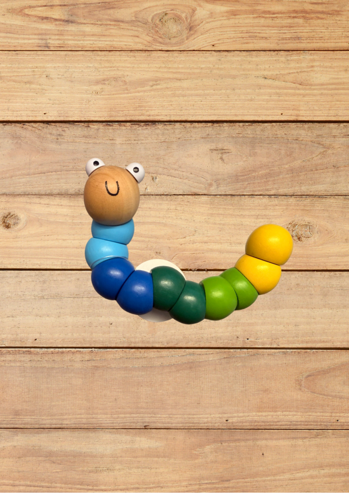 Niedliches Kinderspielzeug „Holzwürmchen“ aus bunt gestaltetem Holz, CE-geprüft und für Kinder ab 10 Monaten geeignet. Fördert spielerisch Motorik und Entdeckerfreude.