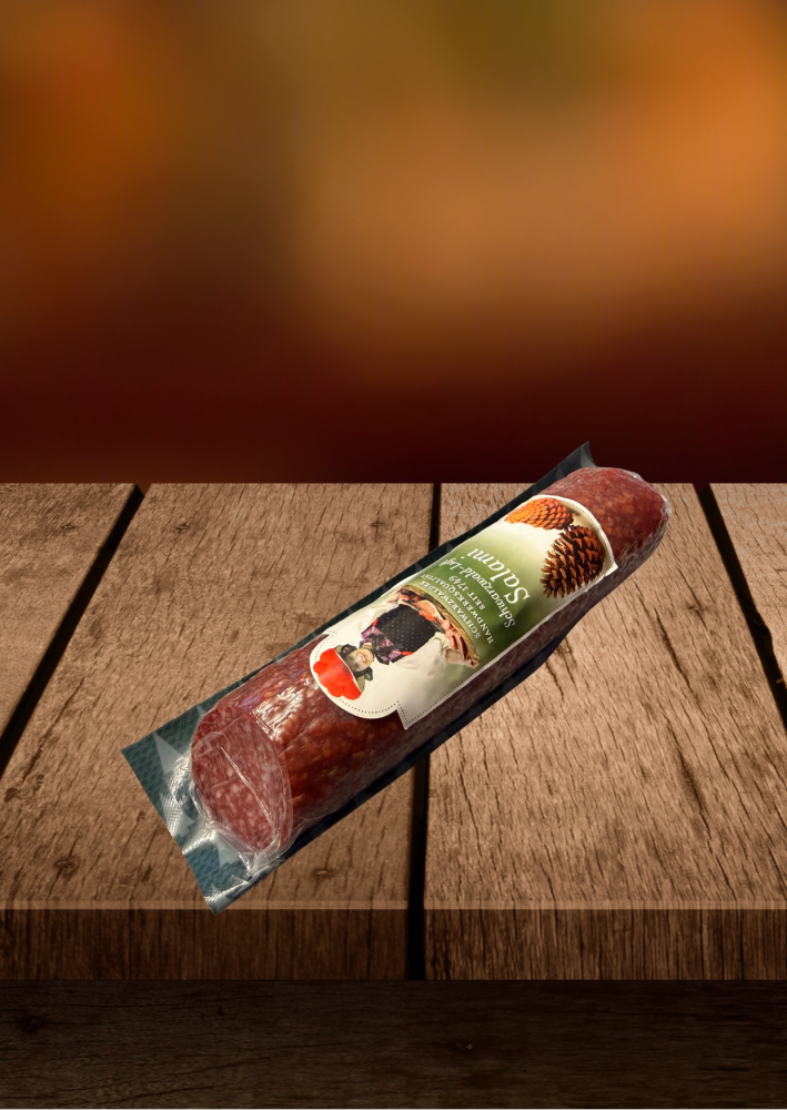 100 g Salami werden aus 135g Fleisch (Schweine- u. Rindfleisch) hergestellt.