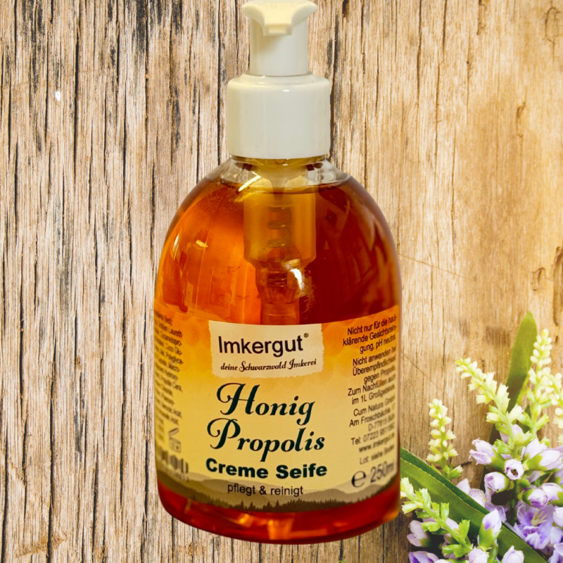 Reinigung & Pflege mit der cremigen Flüssigseife aus Honig und natürlichem Propolis