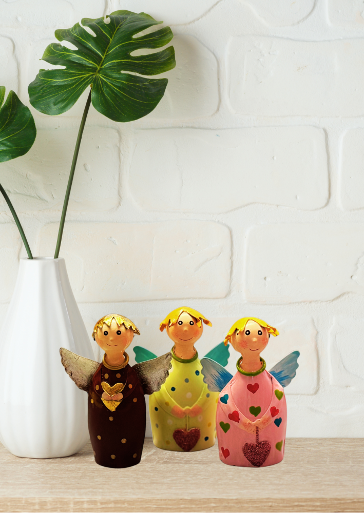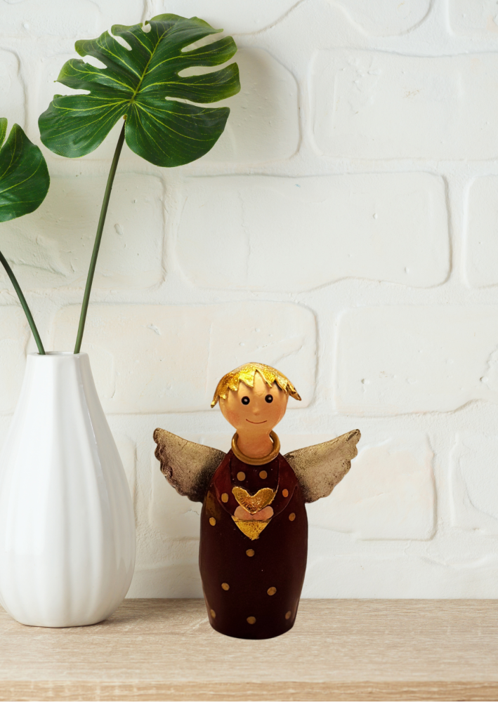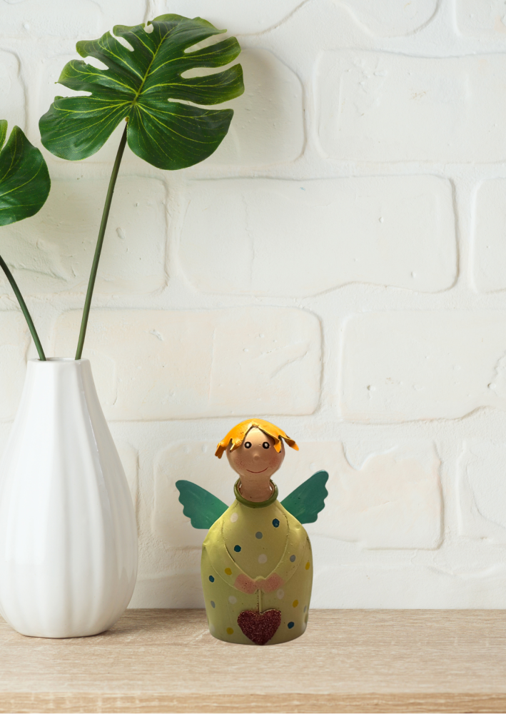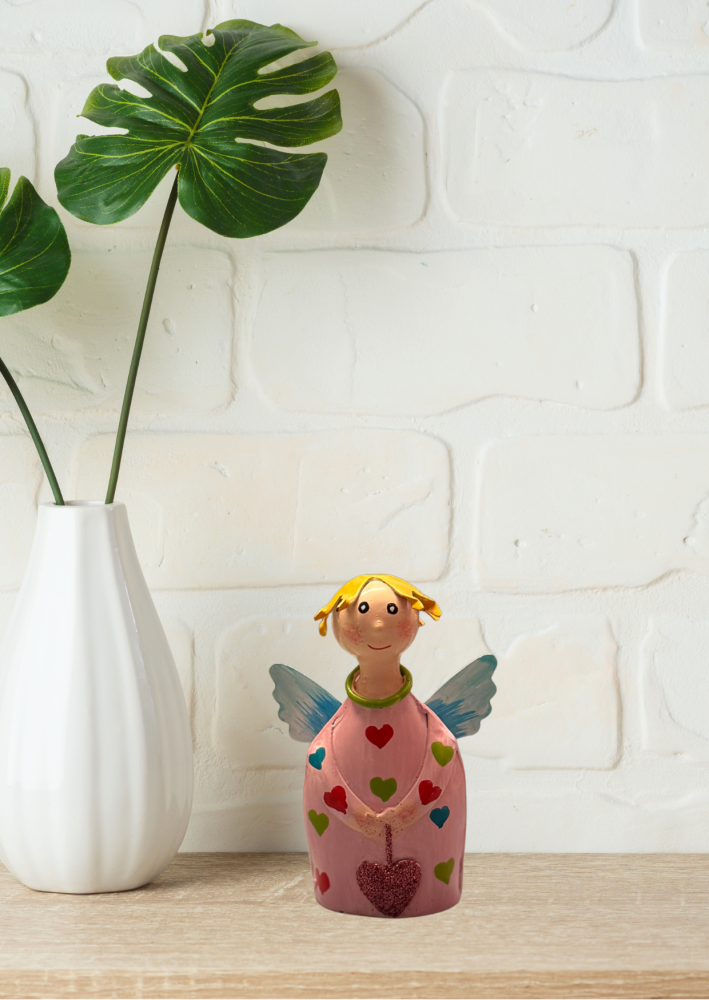 Verleihen Sie Ihrem Zuhause festliche Magie mit dieser bezaubernden Dekofigur! Der süße Engel mit Herz in der Hand verzaubert mit glitzerndem Kleid und schimmernden, bunten Flügeln. Jedes handgefertigte Unikat strahlt Individualität und stilvollen Charme aus.