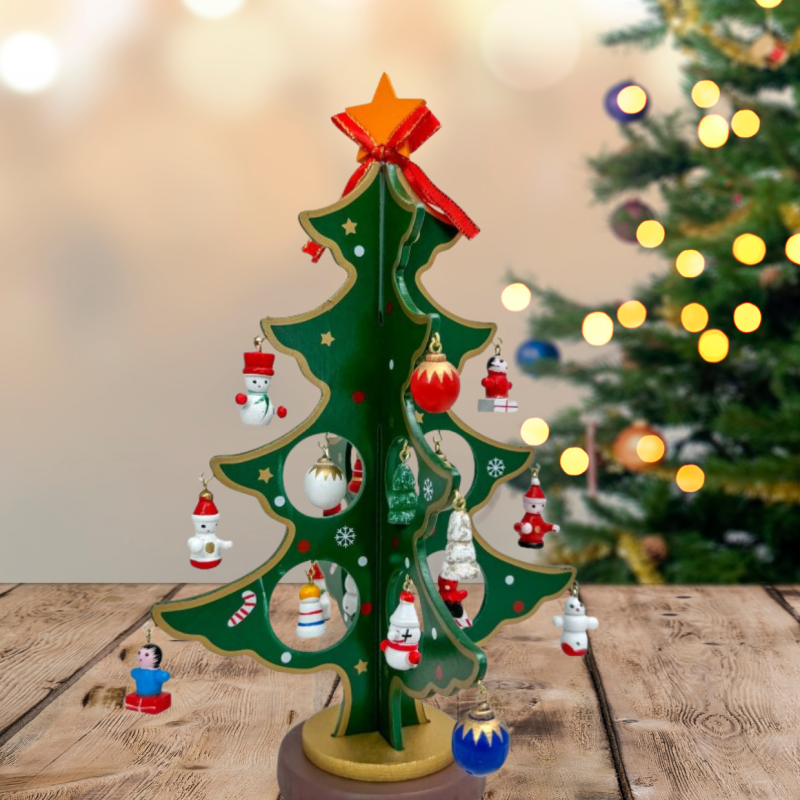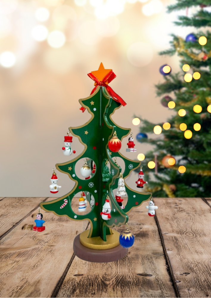 Ein traditioneller Weihnachtsbaum aus Holz in edler Geschenkverpackung – kunstvoll bemalt, mit liebevollen Details versehen. Dieses 25 cm hohe Schmuckstück ist ein zeitloses Werk echter Handwerkskunst und ein stimmungsvoller Blickfang zur Weihnachtszeit.