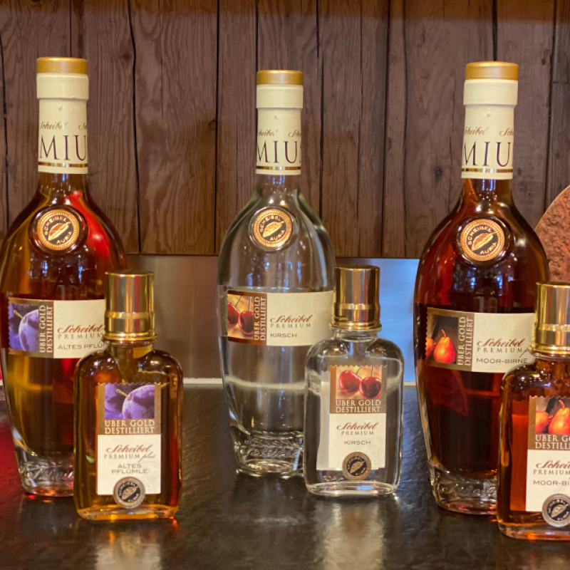 Schwarzwälder Edelbrände über Gold destilliert der traditionsreichen Scheibel-Brennerei.