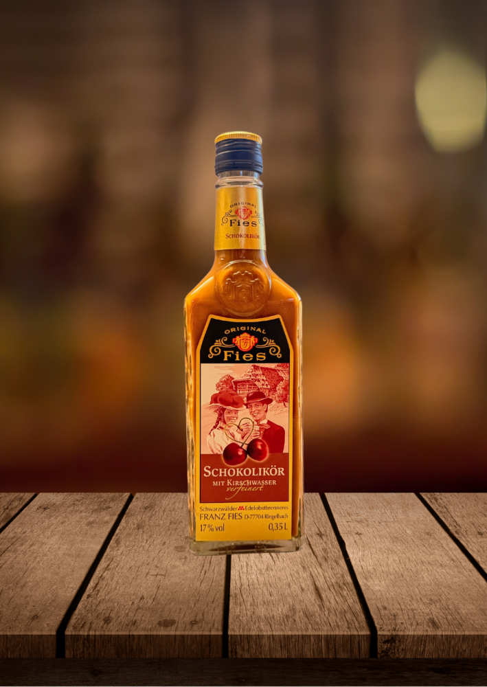 Der Schokolikör der Brennerei Fies ist eine edle Komposition aus Kakaodestillat und 50 % Schwarzwälder Kirschwasser. Dadurch erhält er seinen intensiven Kirschgeschmack und eine harmonische Schokoladennote – ein Genuss für Liebhaber feiner Liköre.