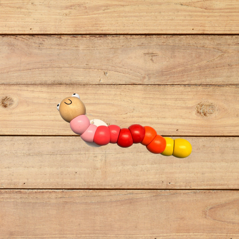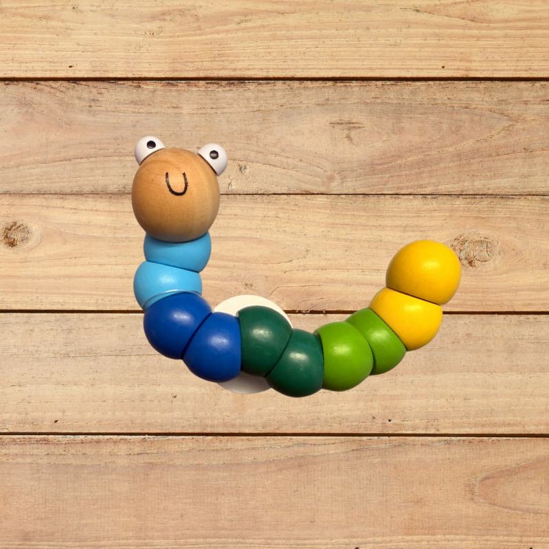 Niedliches Kinderspielzeug „Holzwürmchen“ aus bunt gestaltetem Holz, CE-geprüft und für Kinder ab 10 Monaten geeignet. Fördert spielerisch Motorik und Entdeckerfreude.