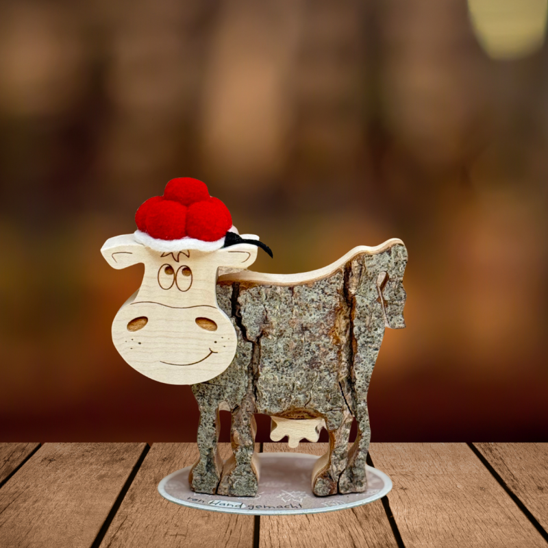 „Lotte die Kuh mit Bollenhut“ – eine liebevoll gefertigte Midi-Holzfigur aus echter Schwarzwälder Handarbeit. Mit ihrem traditionellen Bollenhut und charmanten Details ist sie ein kleiner Hingucker, der Wärme und Heimatgefühl in jedes Zuhause bringt.