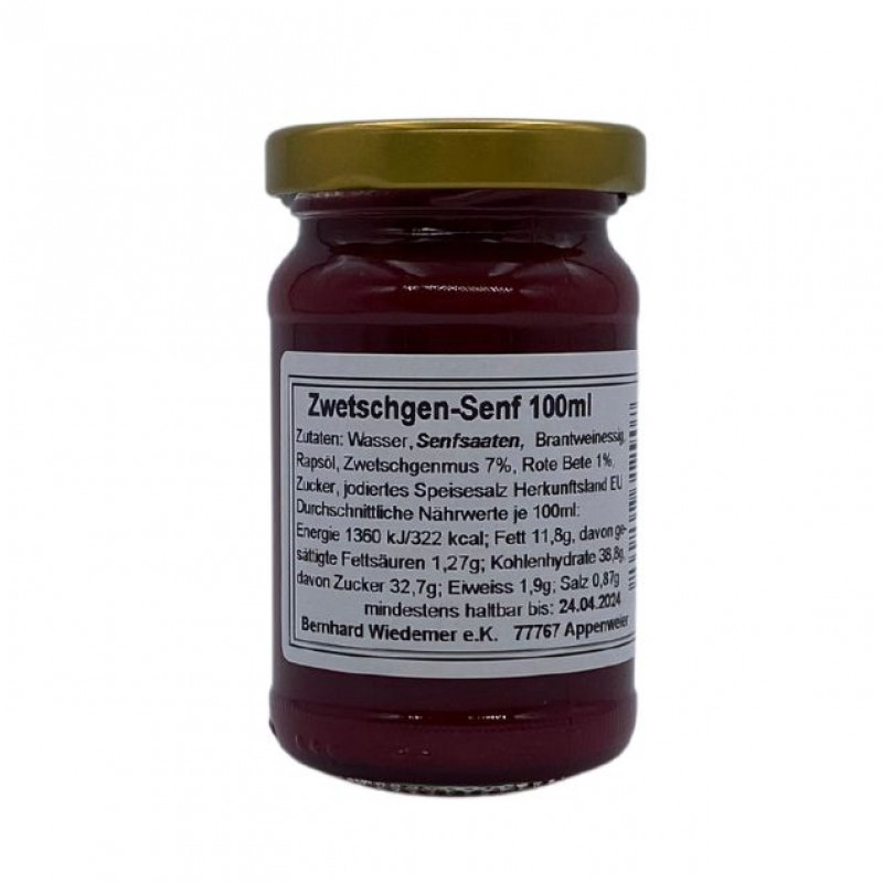 Ingredients: Plum puree 7%, beet 1%, water, mustard seeds, sugar, rapeseed oil, spirit vinegar, iodized table salt.