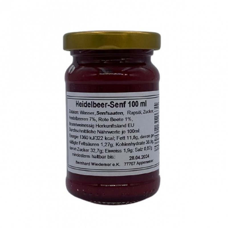 Ingredients: Blueberries 7%, beet 1%, water, mustard seeds, sugar, rapeseed oil, spirit vinegar, iodized table salt.