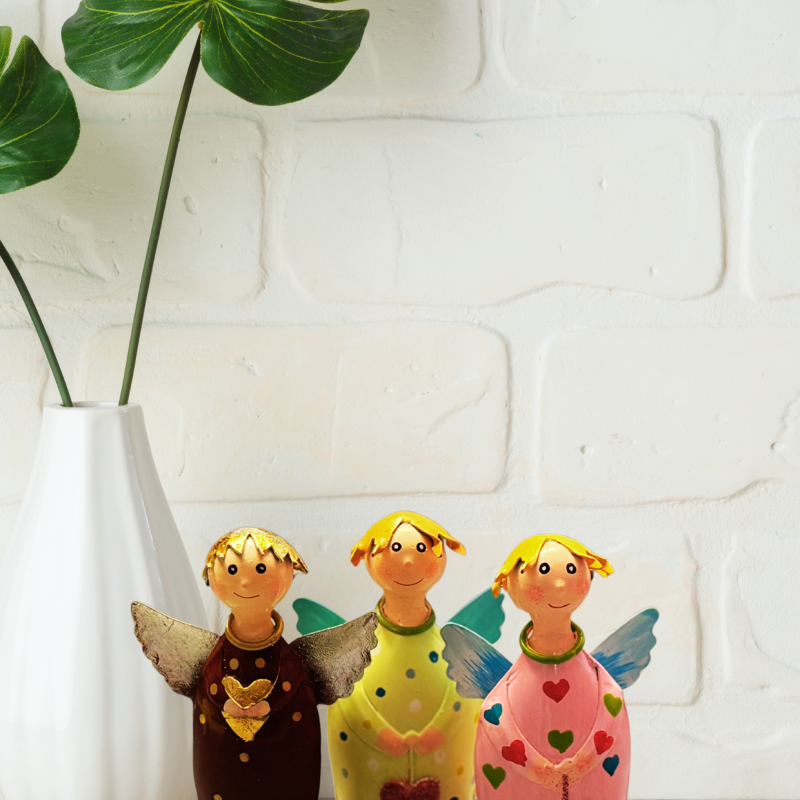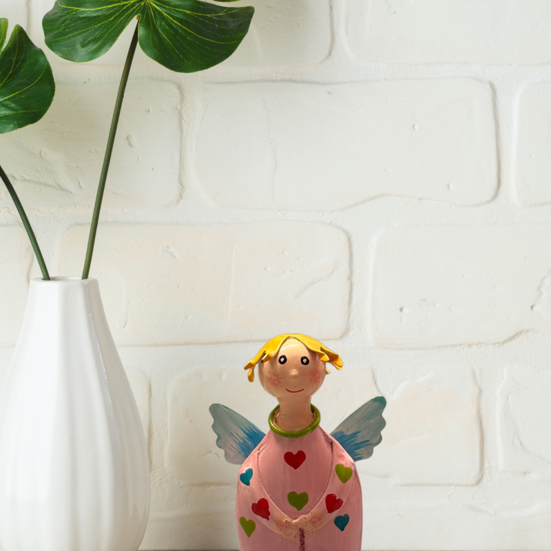 Verleihen Sie Ihrem Zuhause festliche Magie mit dieser bezaubernden Dekofigur! Der süße Engel mit Herz in der Hand verzaubert mit glitzerndem Kleid und schimmernden, bunten Flügeln. Jedes handgefertigte Unikat strahlt Individualität und stilvollen Charme aus.