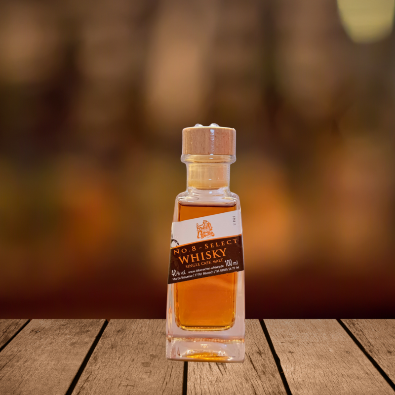 Dieser Single Malt Whisky wurde aus leicht geräuchertem Gerstenmalz destilliert und insgesamt 8 Jahre zuerst in einem neuen Eichenfass, danach in einem Ex-Bourbonfass eingelagert und zum Finshing in einem Sherry Fass nachgelagert.
